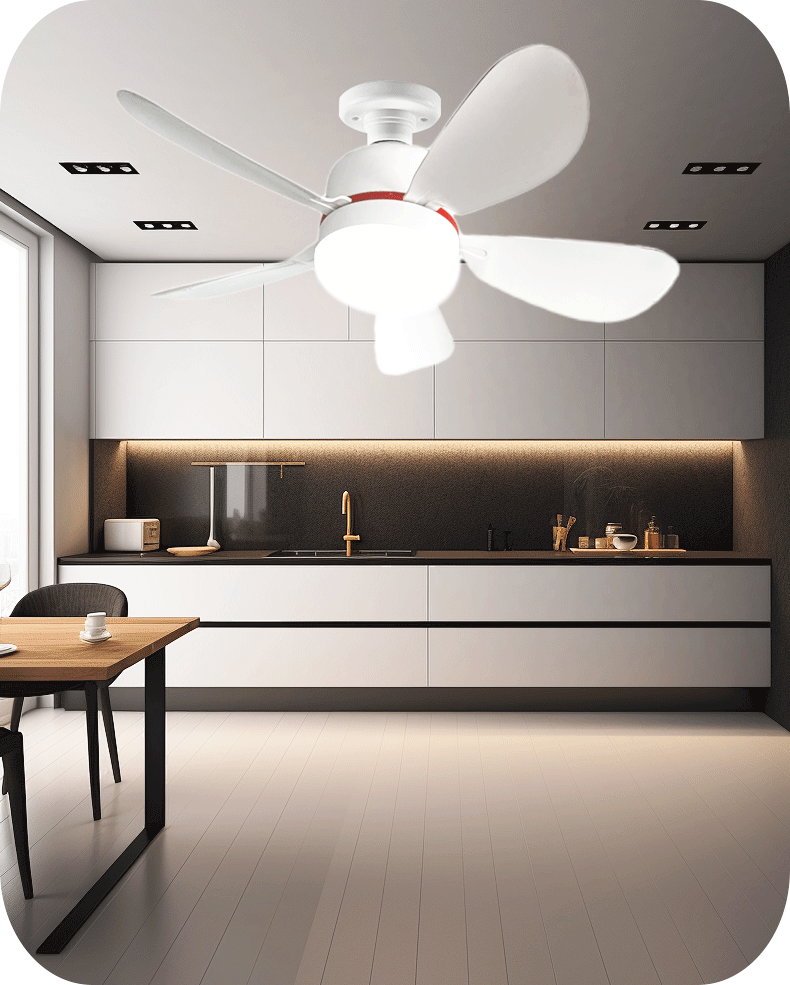 Introducing the Socket Ceiling Fan, a sleek and modern addition to your home. This white ceiling fan features a clean and minimalistic design that complements any decor. With four carefully designed blades, it ensures efficient airflow while maintaining a stylish aesthetic.
